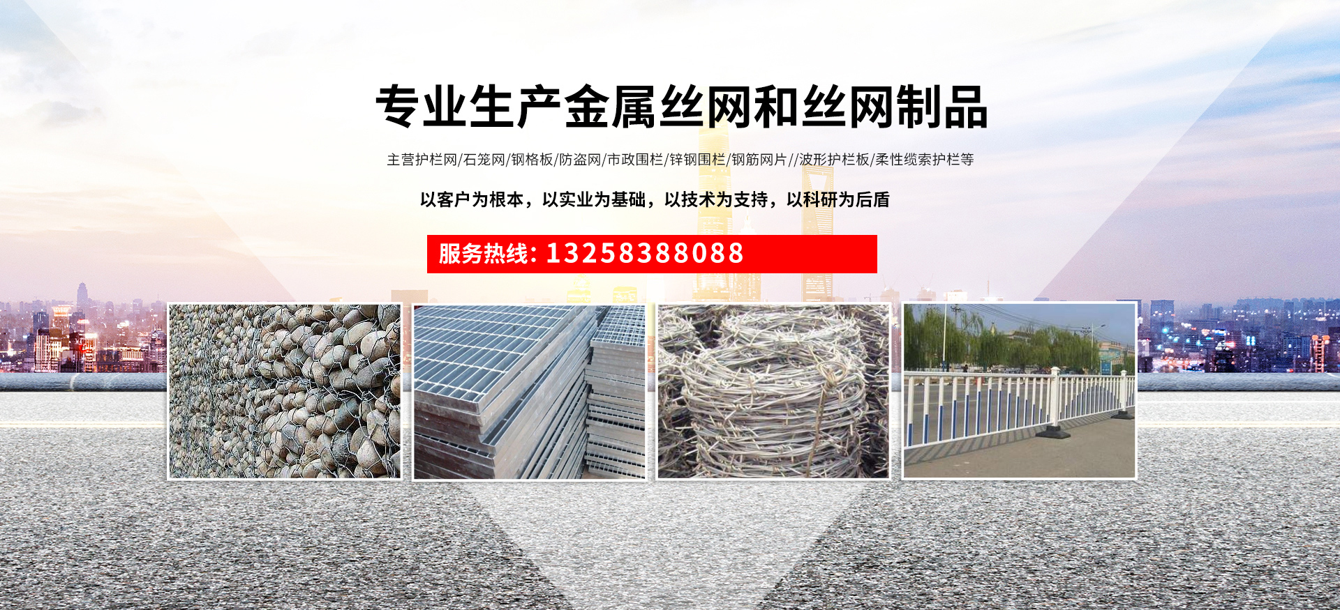 成都宏旭金屬絲網(wǎng)制造有限公司主營護(hù)欄網(wǎng)系列、石籠網(wǎng)系列、鋼格板、防盜網(wǎng)、市政圍欄、鋅鋼圍欄、鋼筋網(wǎng)片、聲屏障系列、波形護(hù)欄板、柔性纜索護(hù)欄、SNS邊坡防護(hù)網(wǎng)等其他絲網(wǎng)類產(chǎn)品。特殊規(guī)格可加工定做,也可根據(jù)客戶來圖來樣定做。自創(chuàng)業(yè)以來,公司一直堅(jiān)持市場(chǎng)為導(dǎo)向,以客戶為根本,以實(shí)業(yè)為基礎(chǔ),以技術(shù)為支持,以科研為后盾,集科研、生產(chǎn)、經(jīng)營為一體,不斷研制開發(fā)新產(chǎn)品,開拓市場(chǎng),走綜合發(fā)展之路。多年來,公司憑借過硬的質(zhì)量,良好的信譽(yù)、優(yōu)質(zhì)的服務(wù)、合理的價(jià)格,贏得了市場(chǎng)和商家的一致好評(píng)。
